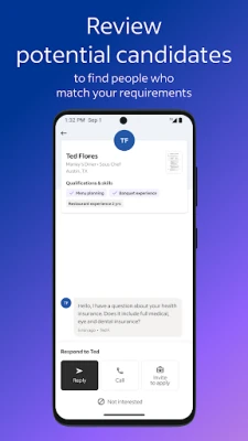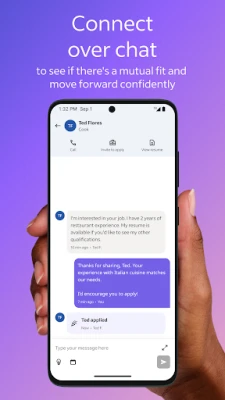 Download and share resumes with your team to facilitate collaborative decision-making. Make in-chat hiring decisions to help efficiently build your workforce.