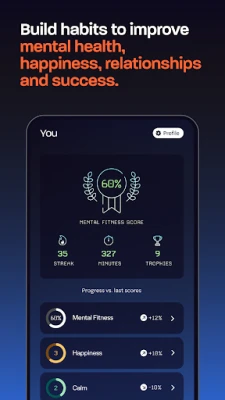 - Get personalised mental fitness guidance and tools to help you achieve happiness, focus, and resilience.