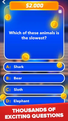 This version of the fun trivia and quiz game has many advantages: a convenient and beautiful interface, thousands of newest, exciting questions, excellent animation, and sound effects will help you immerse yourself in the atmosphere of aspiration for the coveted title millionaire. And this makes it one of the best free quiz games.