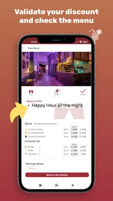 Navigate our interactive map to customize your search based on your preferred maximum price and time of day. Select your preferred beer, delve into exclusive promotions, and effortlessly book a table directly through the app.