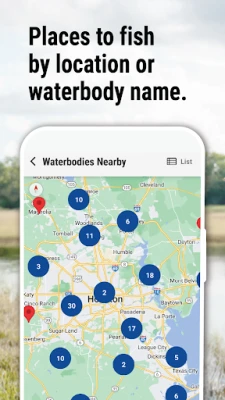 - Places to fish nearby (over 1,000 locations)